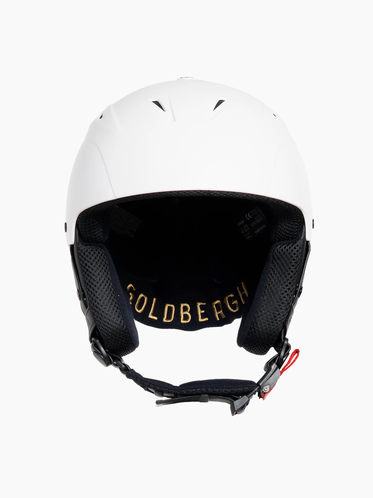 - Goldbergh logo in reliëf op faux leren tape op oorkussens