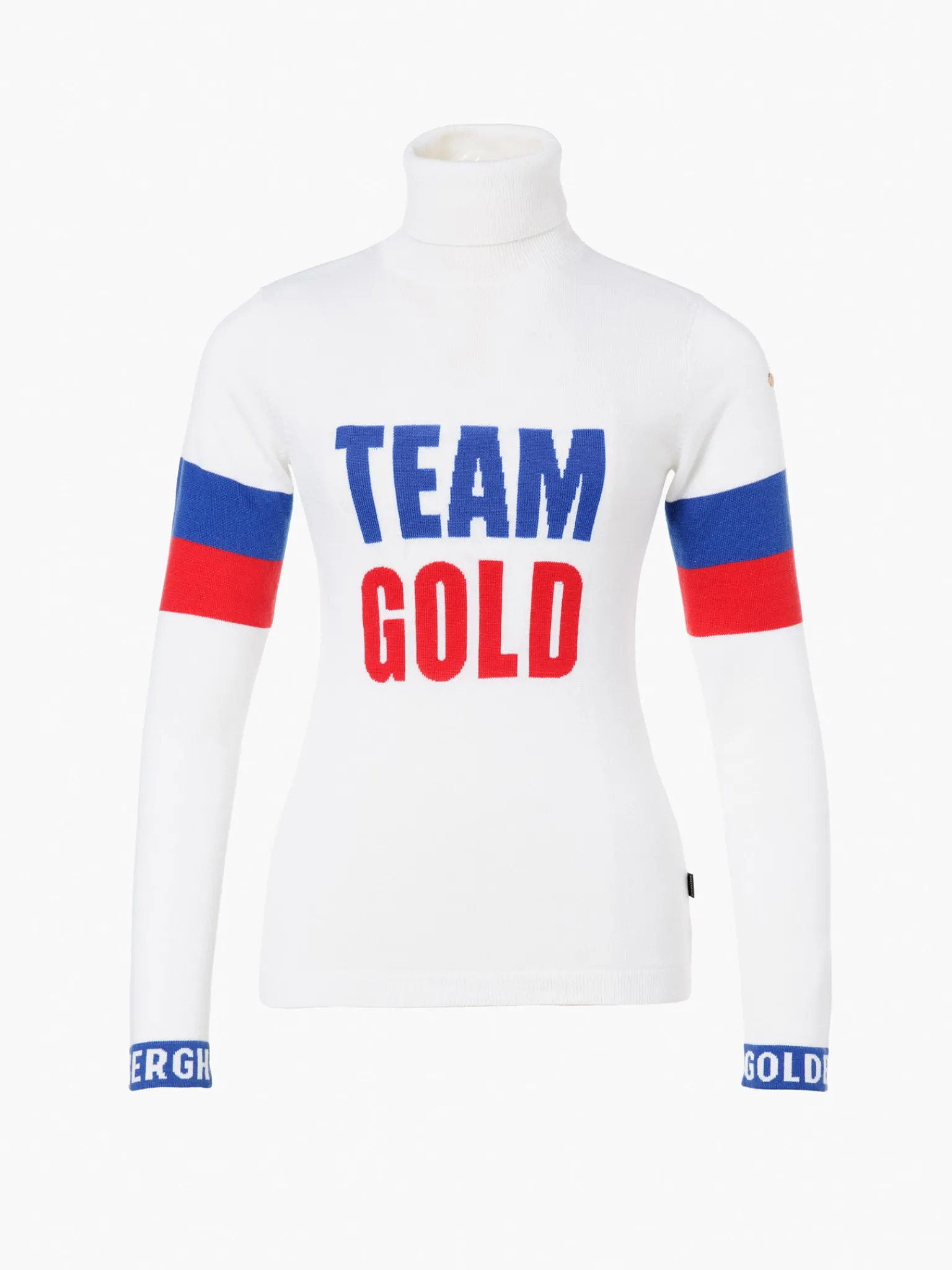 - Goldbergh-breisel in contrasterende kleur bij de manchetten