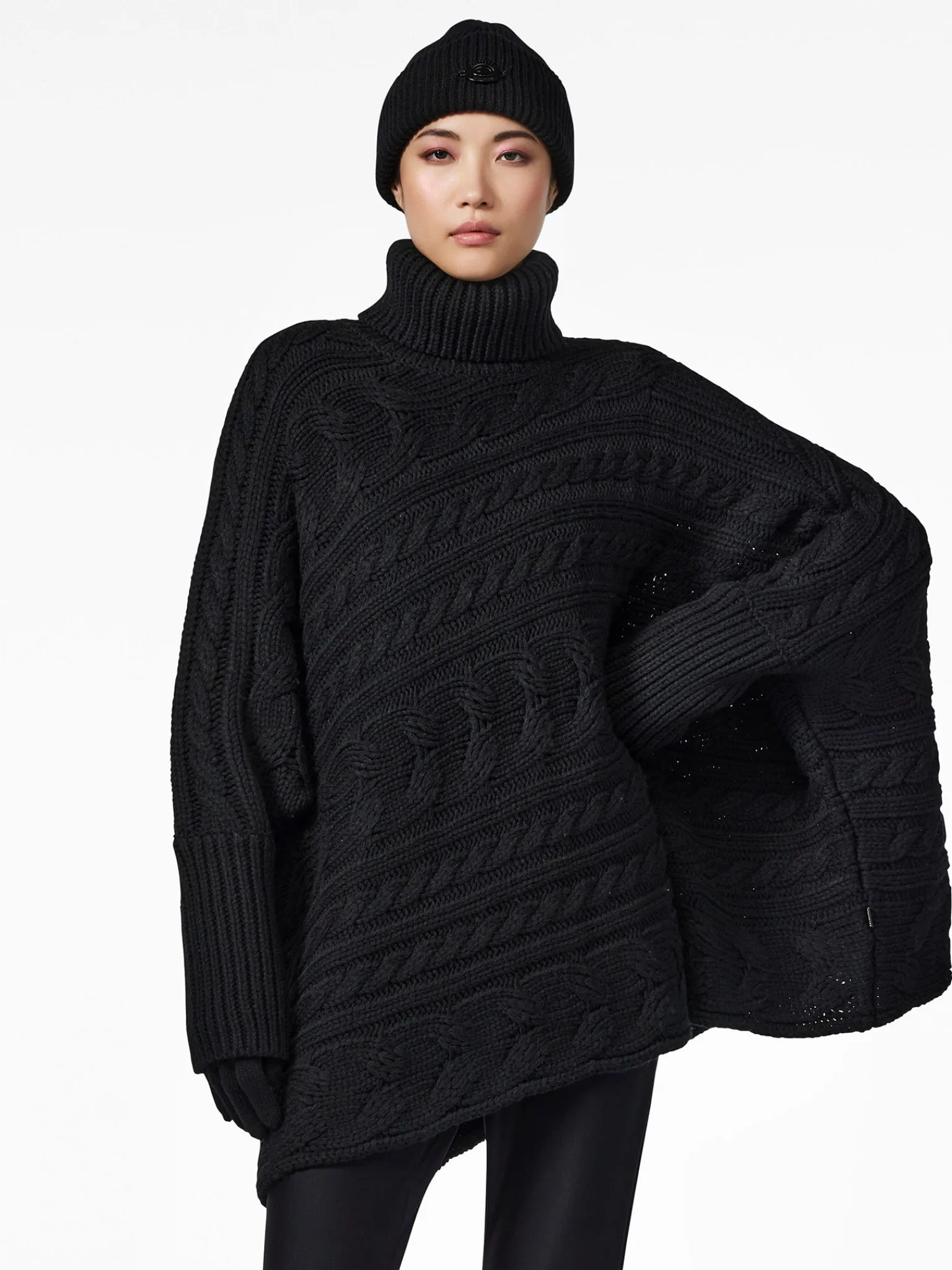 Asymmetrische gebreide kabeltrui