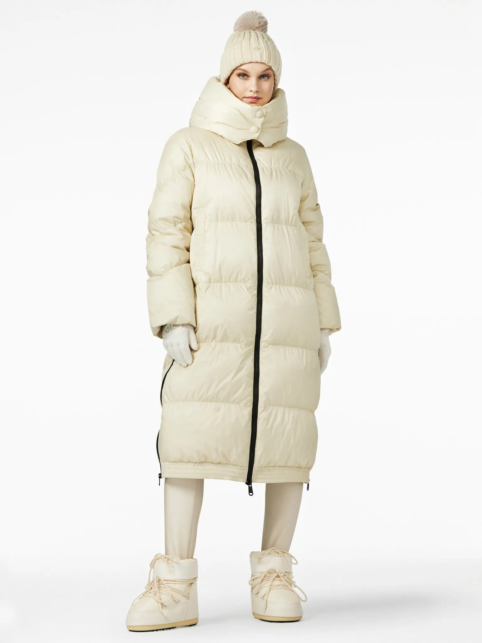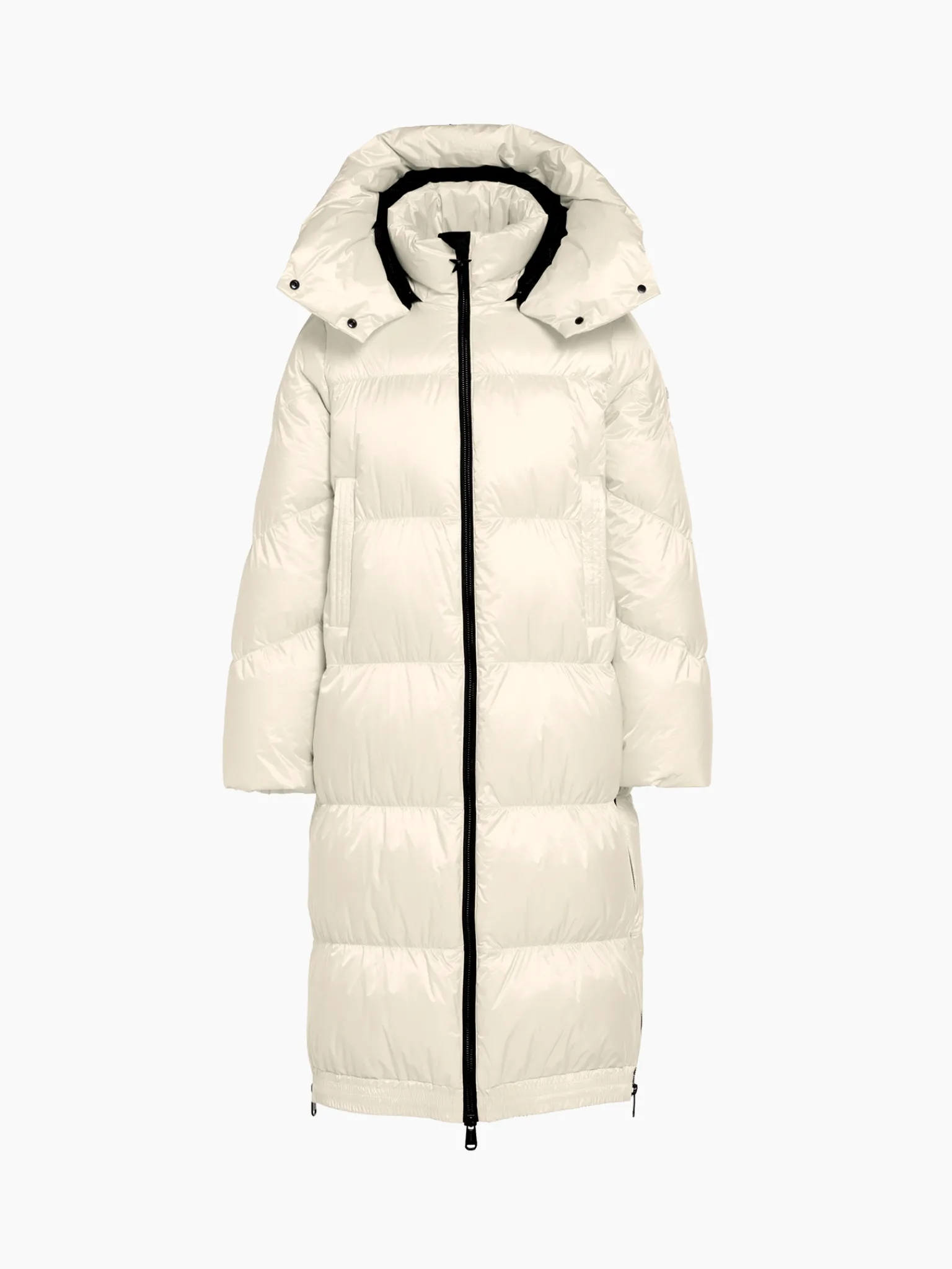 Gewatteerde lange donsjas met capuchon