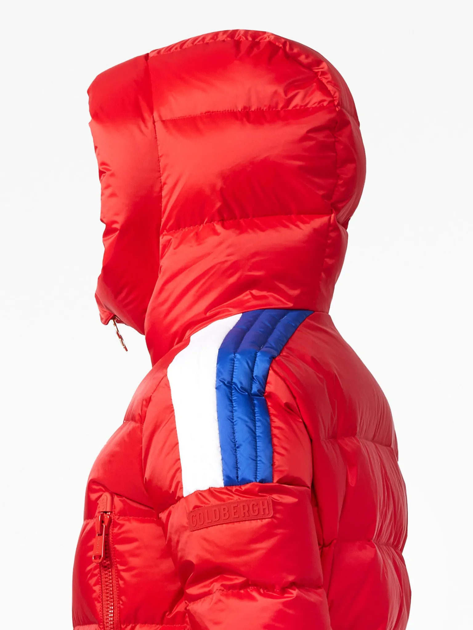 Gewatteerde donsjas met capuchon en contrasterende strepen op de schouders/mouwen