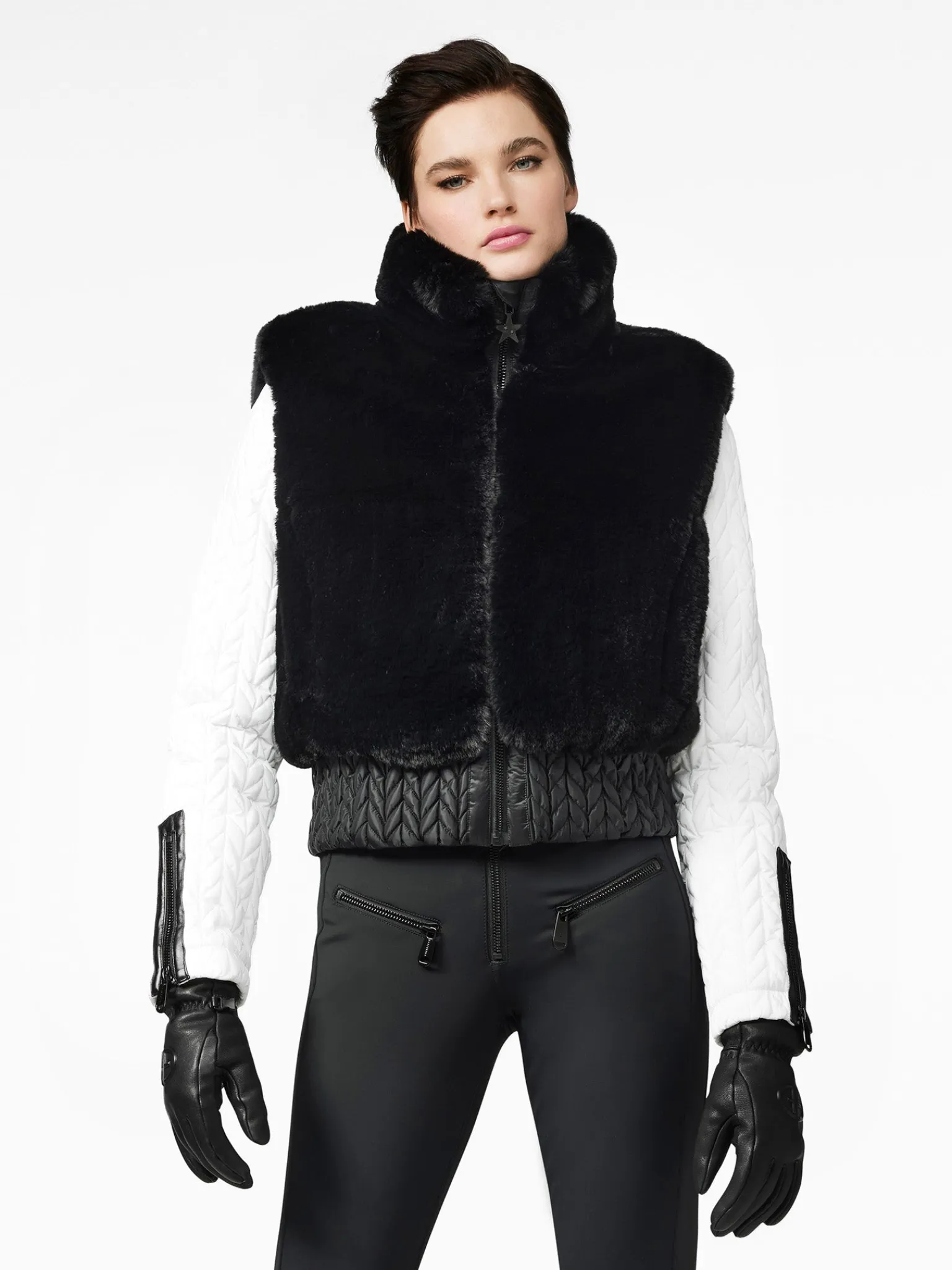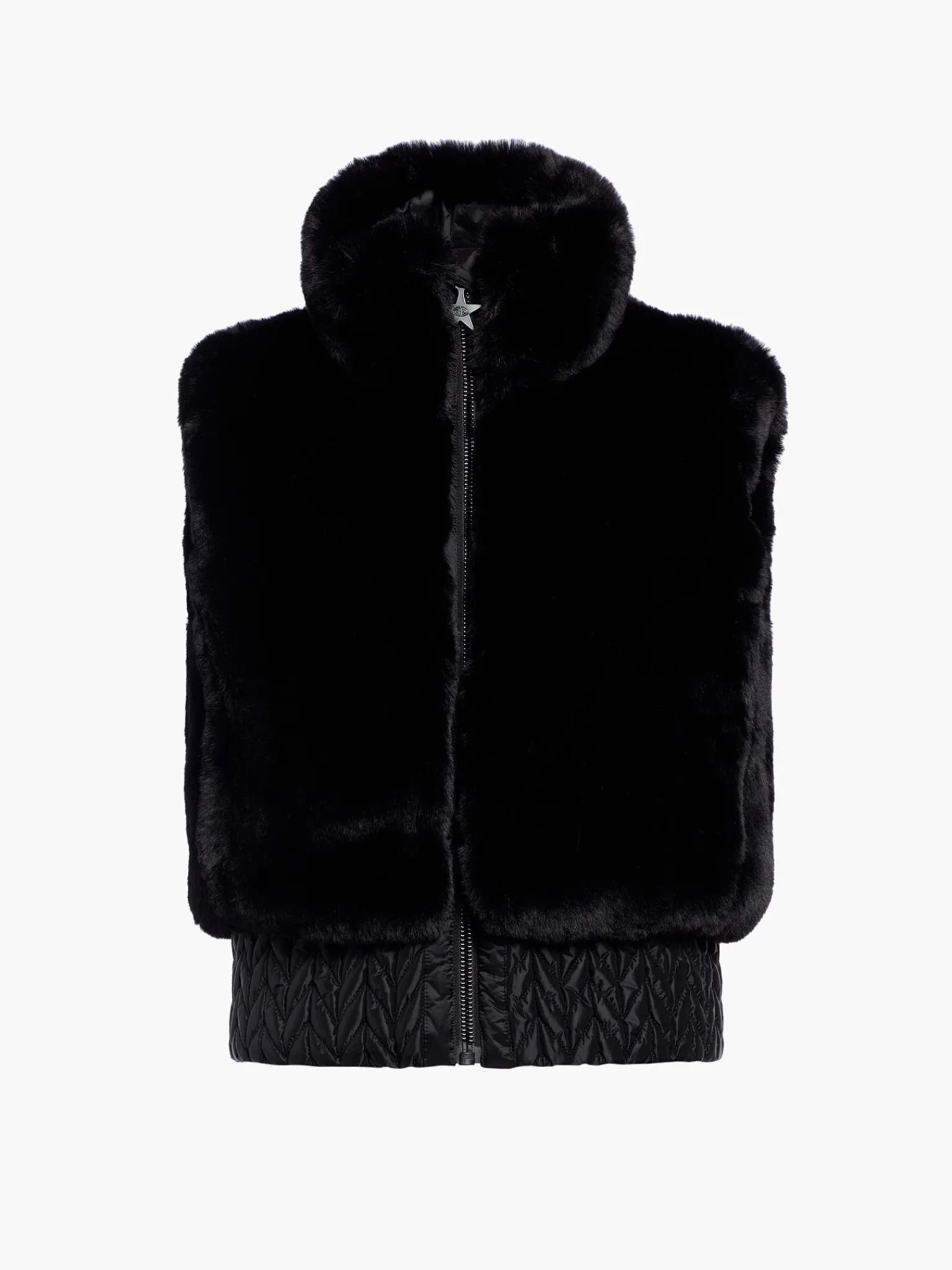 Imitatiebont bodywarmer met smokdetails