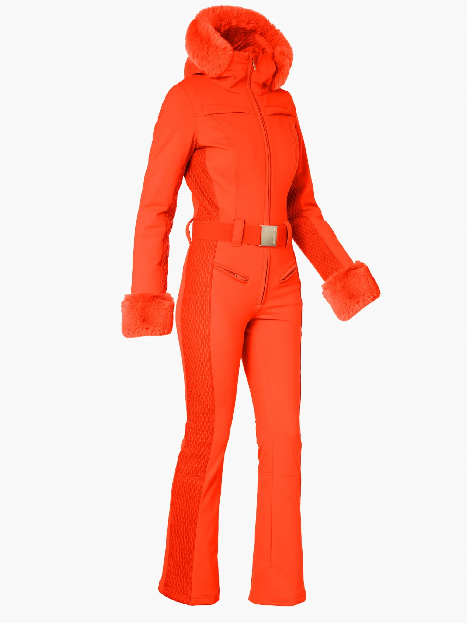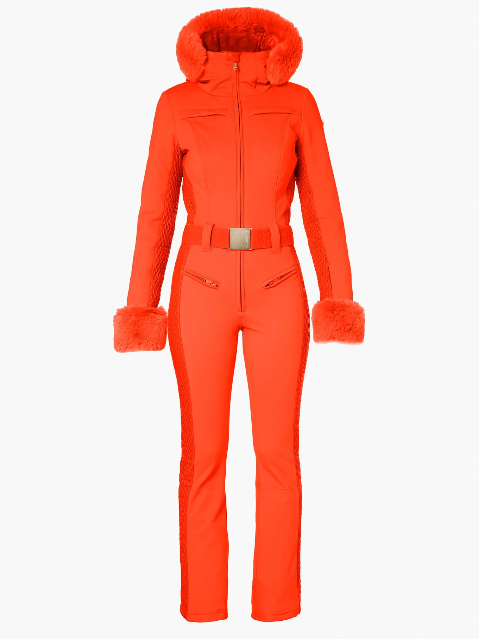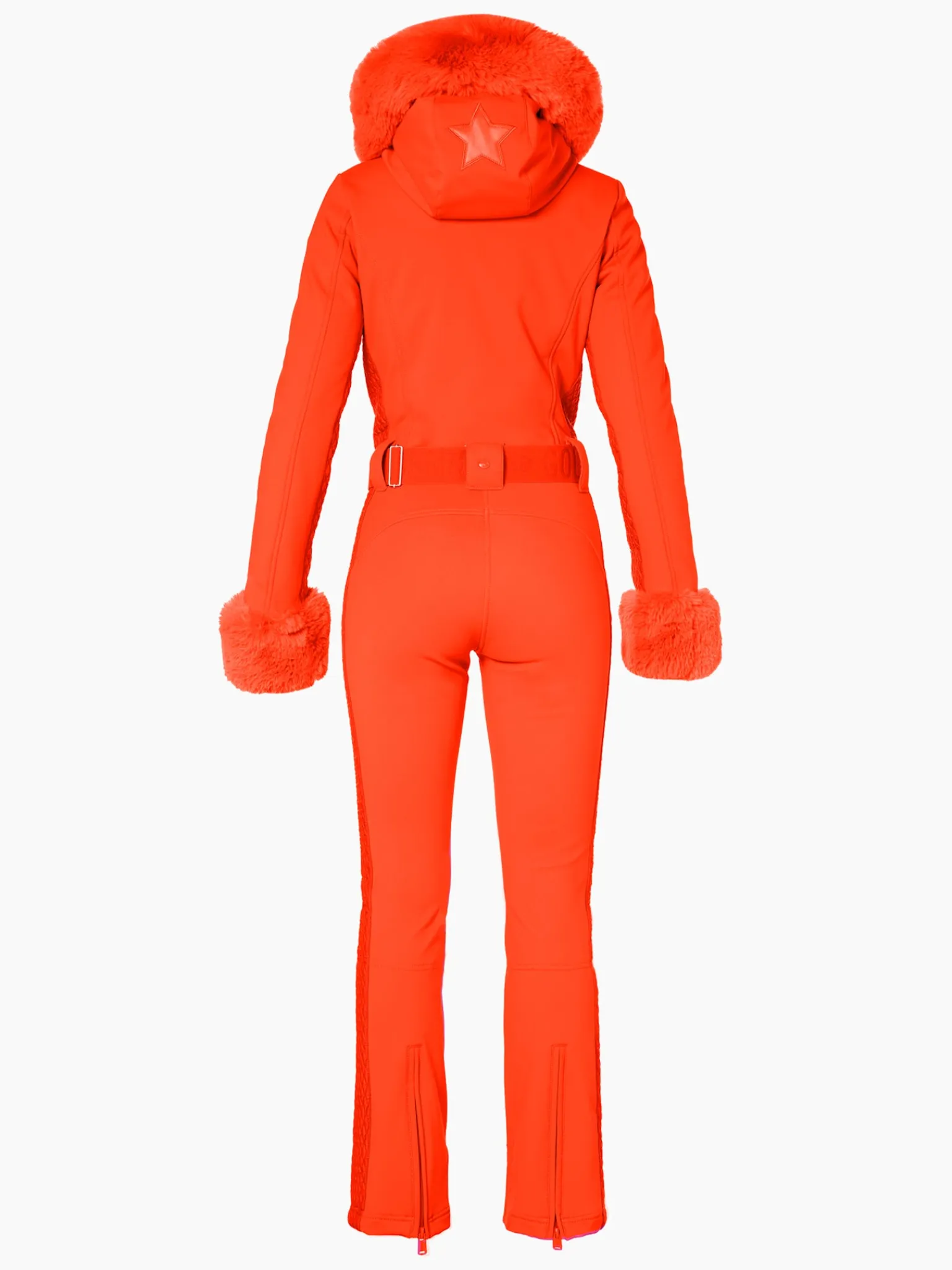 Softshell skipak met capuchon, rand van imitatiebont en manchetten van imitatiebont