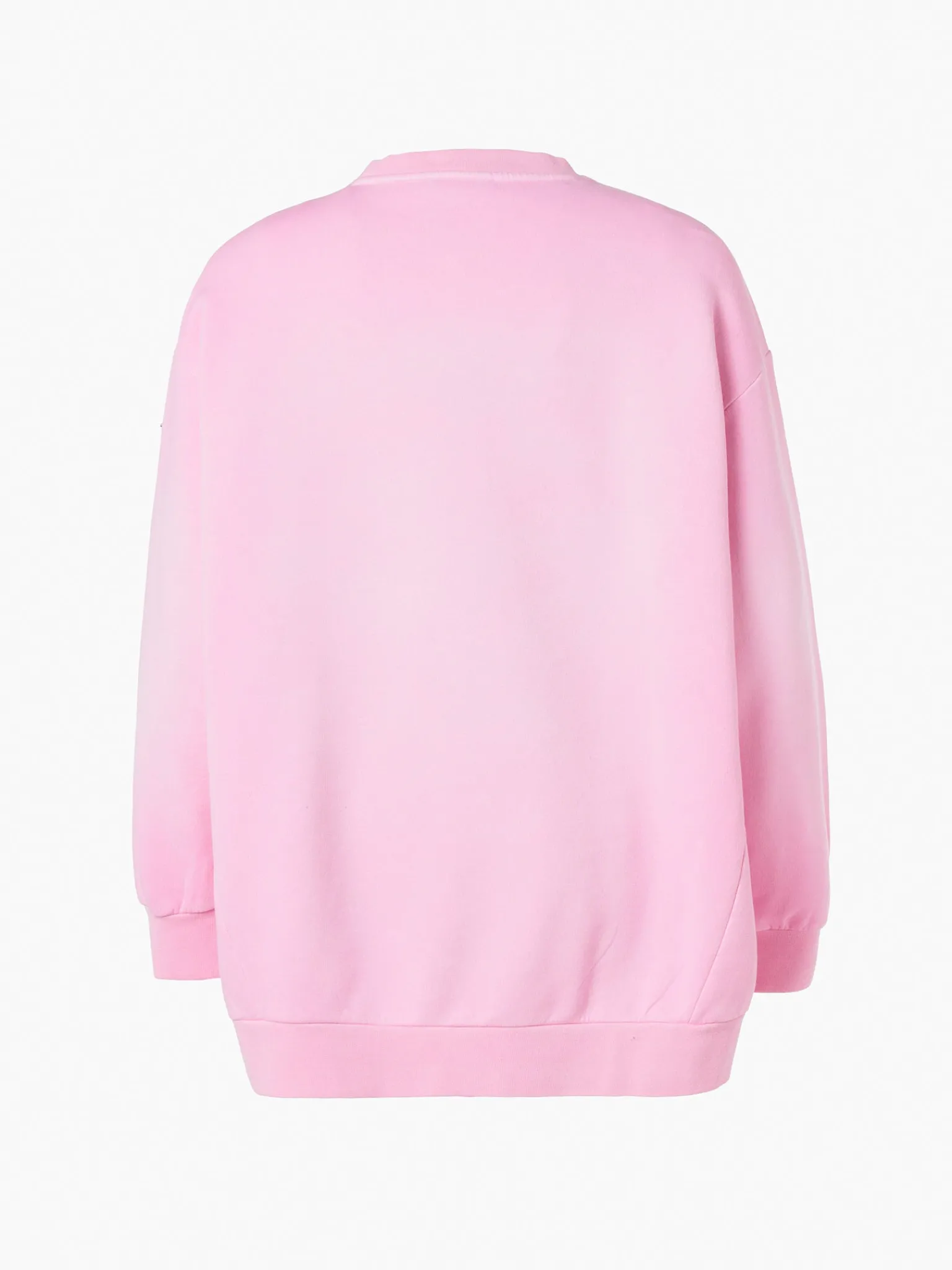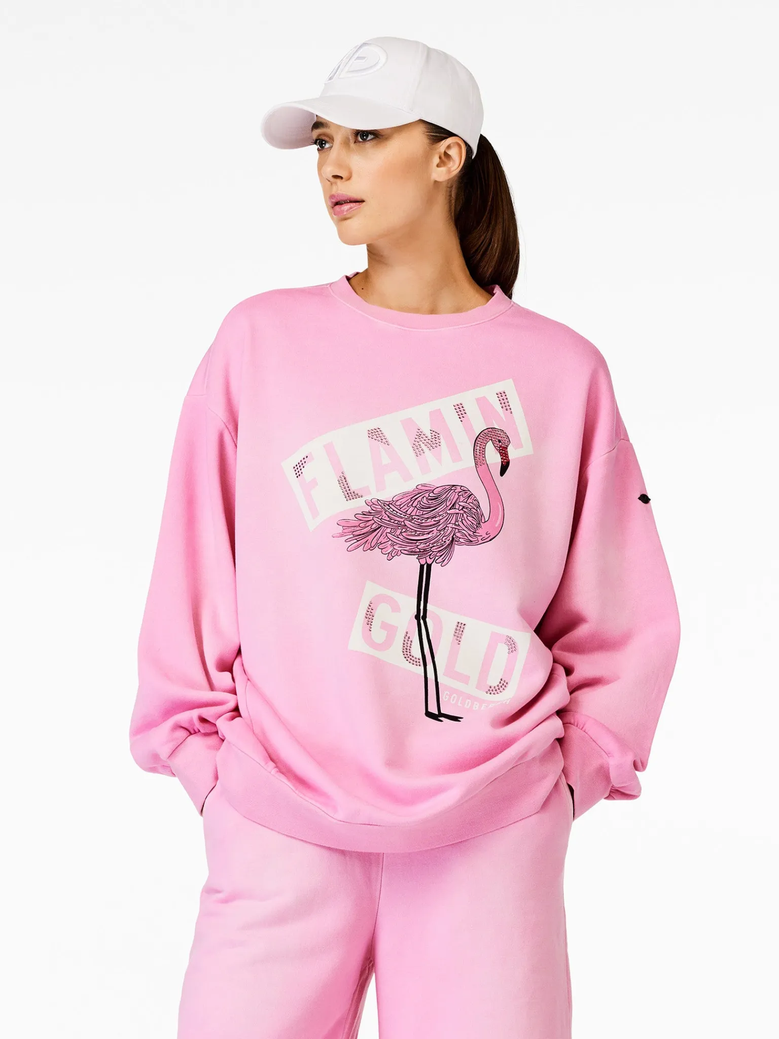 - Flamingo print, borduursel en strass combi-artwork op de voorzijde